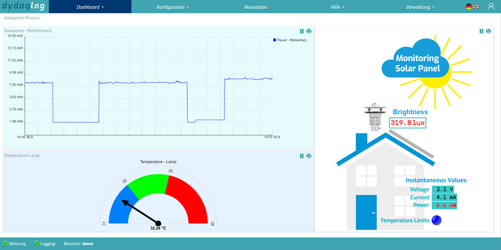 Messwerte erfassen, Prozesse und Maschinen überwachen oder Prüfstände automatisieren - die Einsatzgebiete für unsere Messsysteme sind ebenso häufig wie vielfältig. Darum haben wir dydaqlog und dydaqmeas so universell gedacht und entwickelt wie möglich - sowohl beim Anschluss an unterschiedlichste Prozesssignale und Sensoren, bei der nahtlosen Anbindung an industrielle Cloud-Strukturen und bei der intuitiven Bedienung über das Internet. Damit Sie die erfassten Daten in Echtzeit und überall in der Welt in Ihre Entscheidungsprozesse zur Produktion, zum Prozess oder zur Qualität einfließen lassen können.